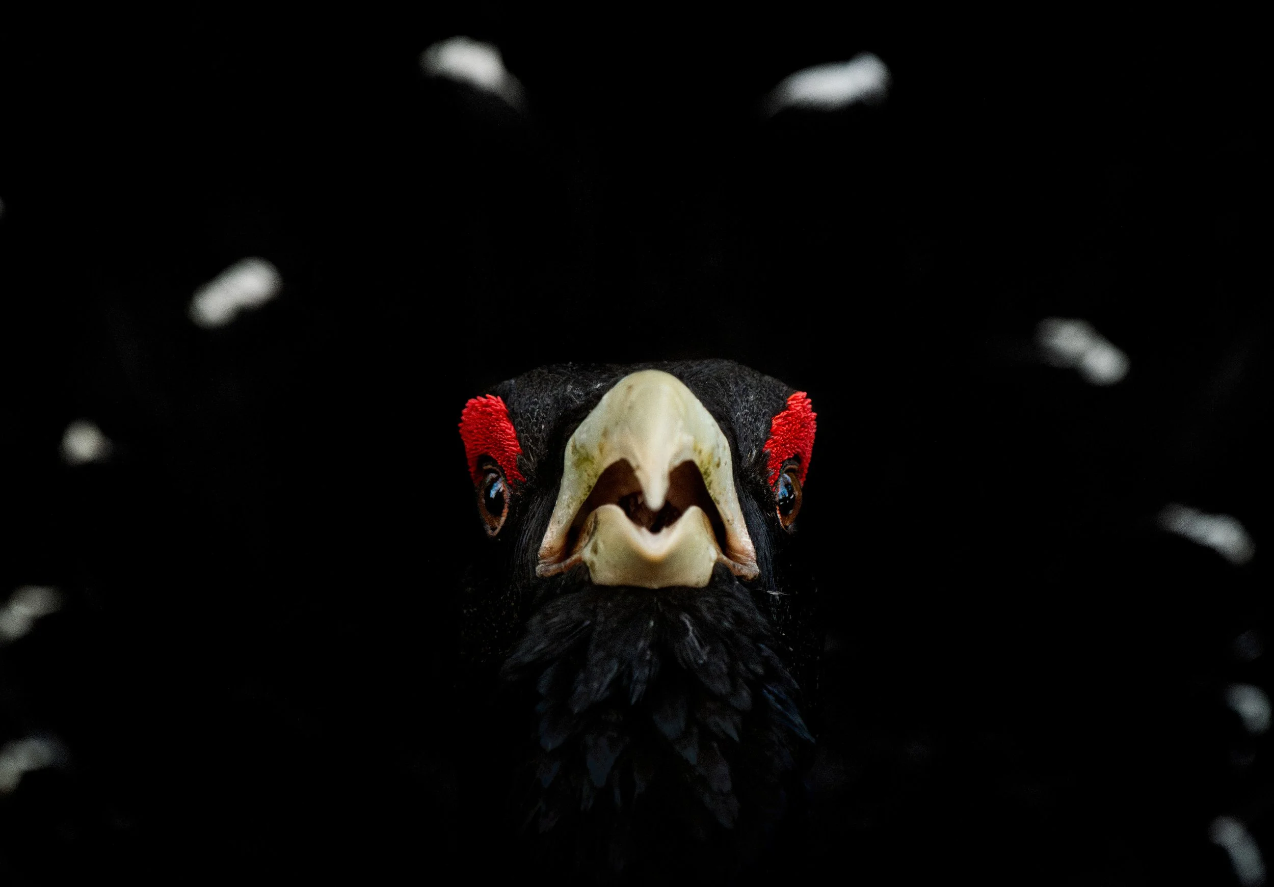 Western capercaillies are impressive birds. In the spring, they meet on their lek to fight and display. After the lekking season is over, they go back to their secretive life in the forest. But a small percentage of the population have a significantly higher level of hormones, especially testosterone. These birds can display anywhere anytime through the year, and see every living creature as their enemy. Dogs, humans and even cars, they throw themselves at you without fear. Meeting one of these deviant capercaillies, I was able to make some quite different images as he had no fear and displayed on a small hill in front of me. When the Capercaillie folds out his tail during display, a half circle of white patterns emerges. With an otherwise dark background and the black plumage of the capercaillie, I used a heavy underexposure to make an image highlighting the vibrant red eyebrows and the tail feather pattern.
