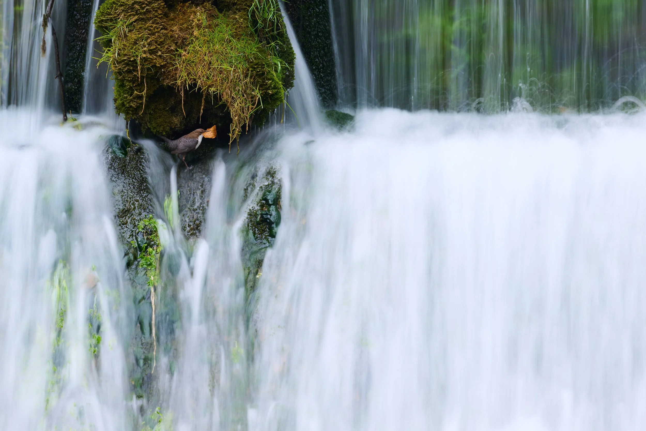 I am exploring my local spots for quite a while now, in search for a nice dipper habitat. Until I found this place a few years ago. When a pair of White Throated Dippers were breeding at this small stream, I waited until the weather forecast showed some cloudy/rainy weather, so that I can achieve a longer exposure time. The dipper landed right at the position where I had wished for it. The cherry on the cake was the nesting material, which it was collecting for the built of their nest.