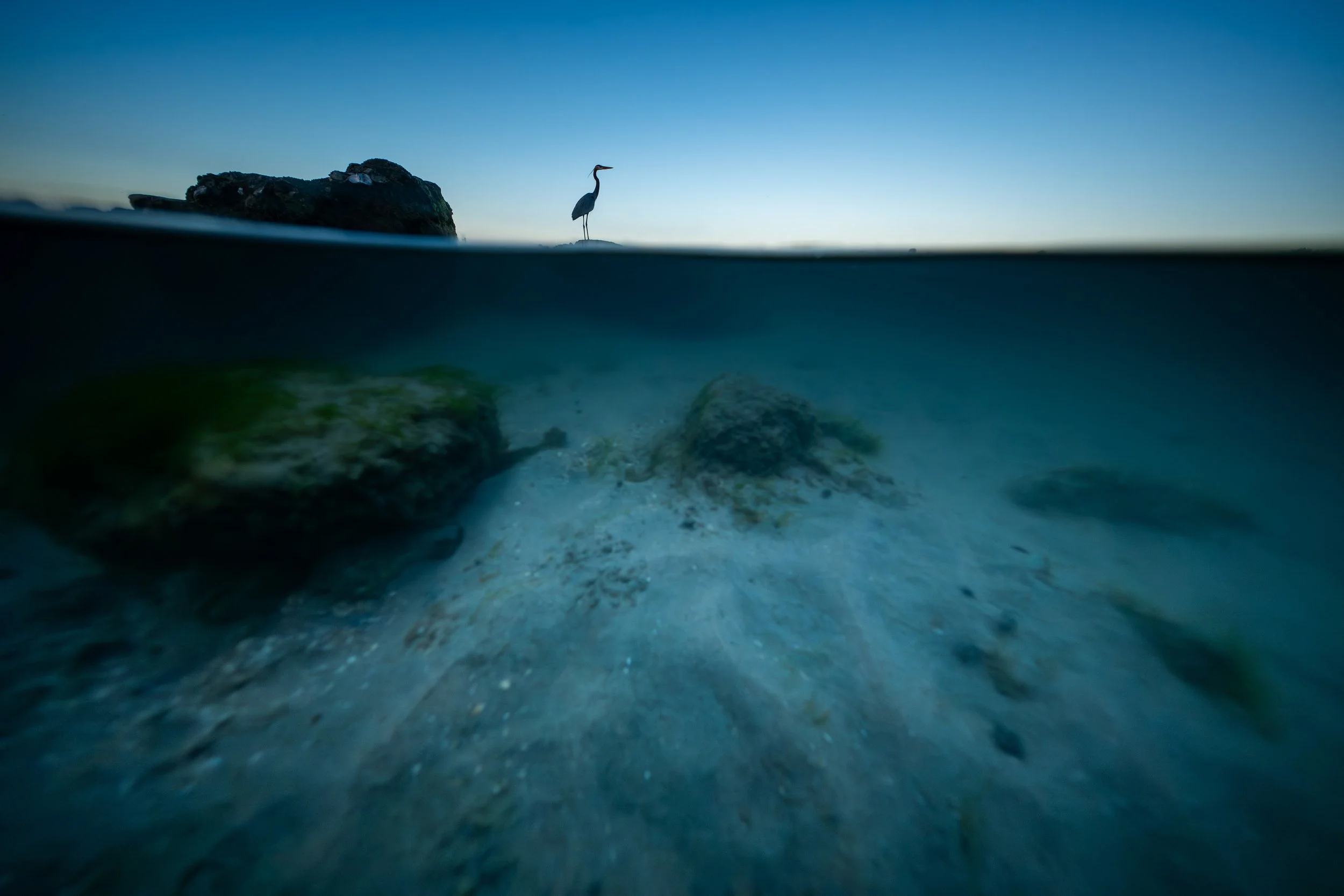 This day was a lot of trial-and-error. Playing with holding the housing at different levels above the surface, just at the surface, or just below, to see what would lead to the most pleasing result. I enjoyed this look the most as it smoothed everything out and lead to an even split between the underwater and above. There is not much dynamism in the sky, or beneath the surface, so to me it is much more of a calm, serene, moment in time, captured.