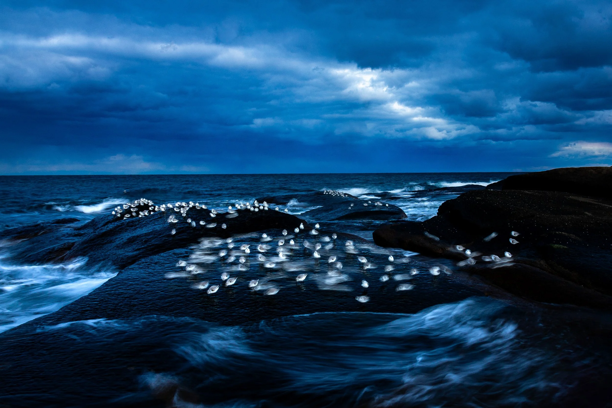 Sanderlings flock the shoreline on a gloomy winter evening. As dusk closes in, this city of ghosts comes to life. As I observed the sheer number of birds in awe, I knew I had to capture the sheer number of birds, and it occurred to me that I could capture the movement of that flock as well by opting for a long exposure wide angle photo. The blue hues of the evening sky felt surreal as I fired away hundreds of photos, eventually capturing this beautiful scene.